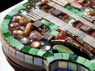 For this group: You can bring your own designs, and even work in a different size or in 3-D, if you O.K. it with Don first. Beyond the basics, it’s possible to do 3 dimensional projects, like candle holders or lamp shades, or flat panels of different shapes on wood; if you bring your own base piece in the shape you want. If you are planning on doing your own design or a 3-D piece or incorporating non-glass elements, please send your ideas to Don at donspencer43@gmail.com before camp so he can advise on suitability. If you are looking for project ideas or to learn more about mosaic work, Don recommends The Mosaic Artist's Bible by Teresa Mills and available from Amazon.