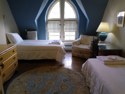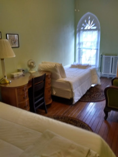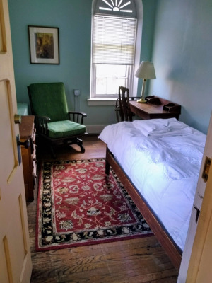One room will generally house 2 people, although singles are often available for an extra fee. Dekoven supplies all linens (including pillows, duvets, sheets, washcloths and towels) and the rooms feature (mostly) single beds. Some rooms have space to push two single beds together to make a double-sized bed for couples (if you double up your bed, you'll need to bring your own larger top covers). Each room has unique comfortable furniture, high ceilings with ceiling fans and at least one window. Air conditioning is available in all rooms. There are bathrooms on each floor, some single baths, some shared. Most rooms are fully accessible with elevator access.